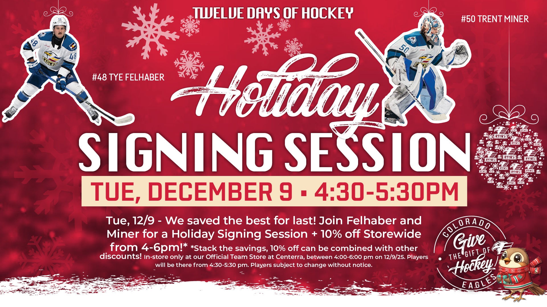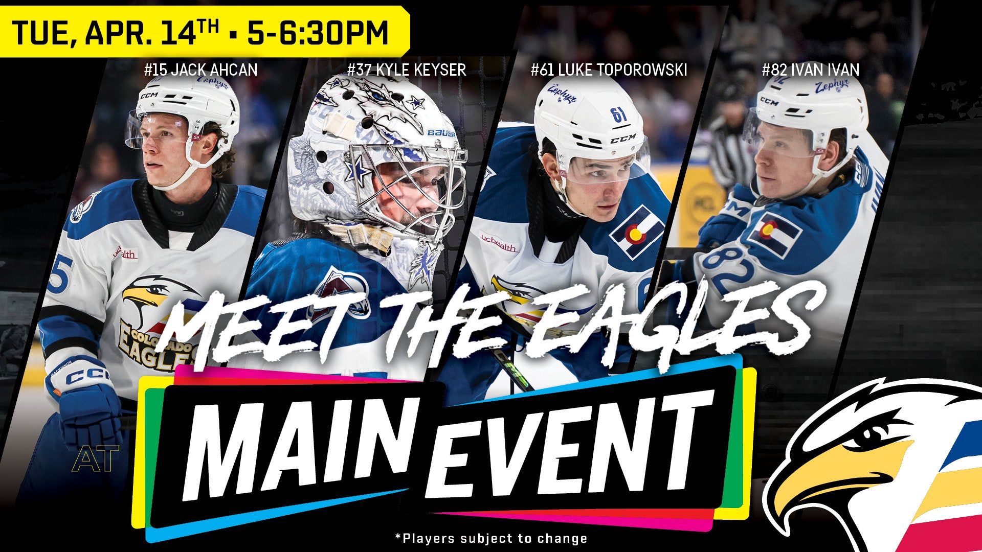 The Colorado Eagles are proud to call Northern Colorado home. We love supporting other organizations and charities in our community. Below is a list of all of our off-season events in Northern Colorado! If you have any questions about an event or appearance, please give us a call at 970-686-SHOT (7468). If you have an event or appearance you would like the Colorado Eagles to attend, please fill out the form below.*All dates & times are tentative and subject to change.