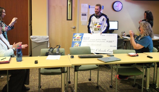 The UCHealth Northern Colorado Foundation Patients and Family Assistance and the Northern Colorado First Responders were chosen by the players as two foundations that would use the money to directly help the Northern Colorado community. Warsofsky, one of the Eagles alternate captains, went out this morning to meet with the foundations to hand over the checks. “We worked with both organizations throughout the year with the First Responders Night, Eagles Fights Cancer and other events so it was an easy decision for us to make. We’re just happy to be able to give back to this amazing community that does so much for us.”