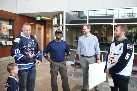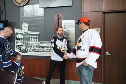 This season the Eagles players created a “Fine Fund”. This fund would fill up every time a player committed an infraction. These infractions ranged from bad penalties during a game, not cleaning up properly in the team kitchen, being late to a meal or flight or bus ride. At the end of the year, the captains then decide what should be done with the money. Often this money is used towards a team dinner or fun team event to signify the end of the season. This year, however, the team captains made the unanimous decision that the fund should go back to the community. “This community supported us players all year long, even though most of us were new faces,” said Eagles defenseman, David Warsofsky. “This money belongs to them.”